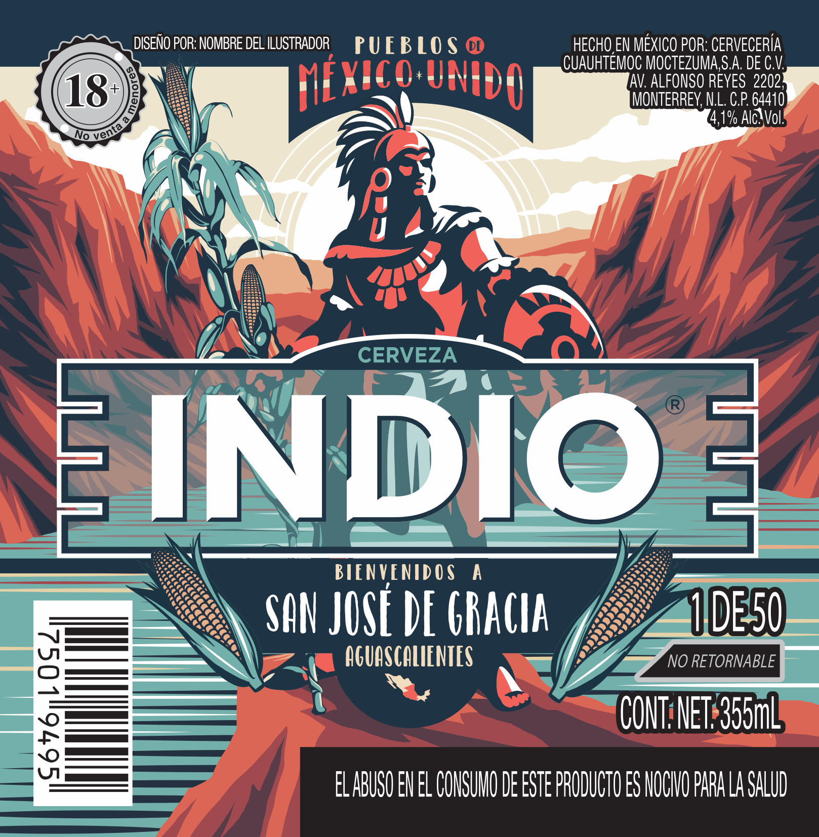 Illustrations for commemorative labels for emblematic Mexican neighborhoods by Cerveza Indio in Day of The Dead in Mexico. Label art for Santa María Atzompa, Oaxaca, Calenda de Muertos, San José de Gracia, Aguascalientes and Calvillo, Aguascalientes. Illustrations were made in Adobe Photoshop and Adobe Illustrator.