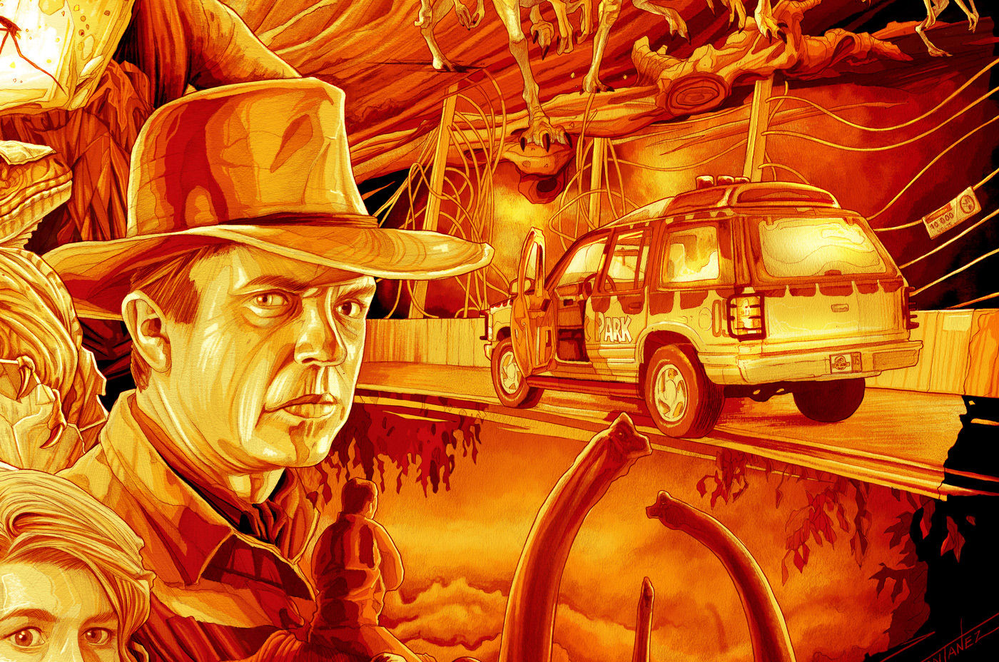 Illustration and poster design inspired by one of my favorites movies "Jurassic Park", the 90's blockbuster directed by Steven Spielberg, starring Sam Neill, Laura Dern, Jeff Goldblum and Richard Attenborough and among others. The Illustration includes original pencil drawings, assambled, remastered and colored in Adobe Photoshop with Wacom Cintiq.