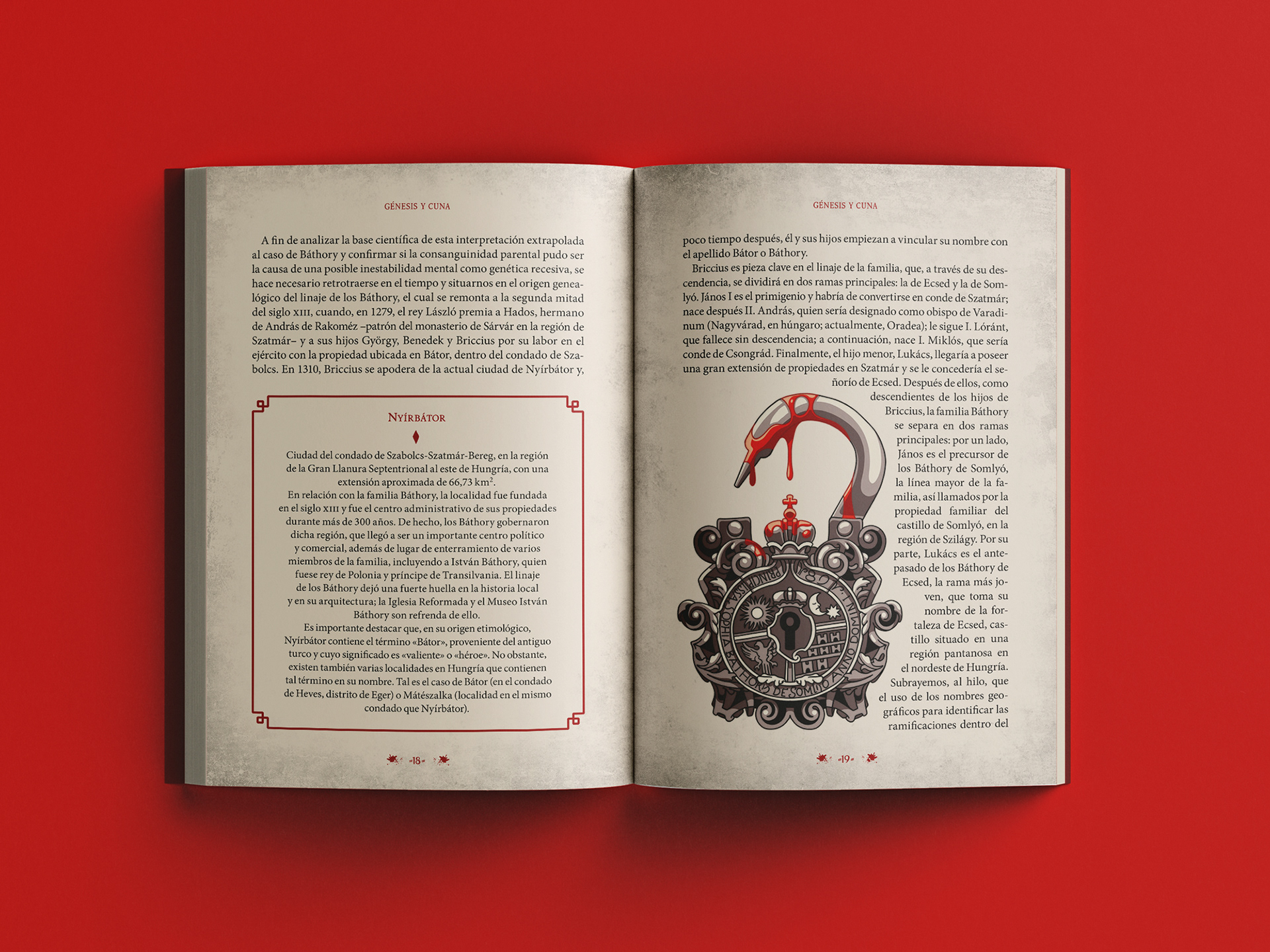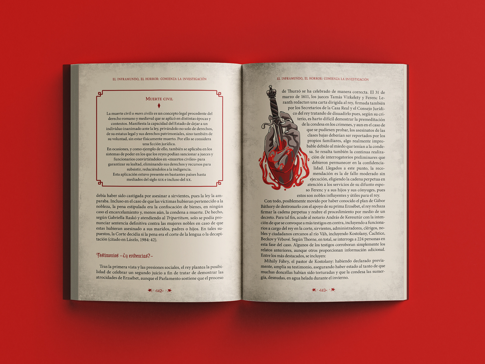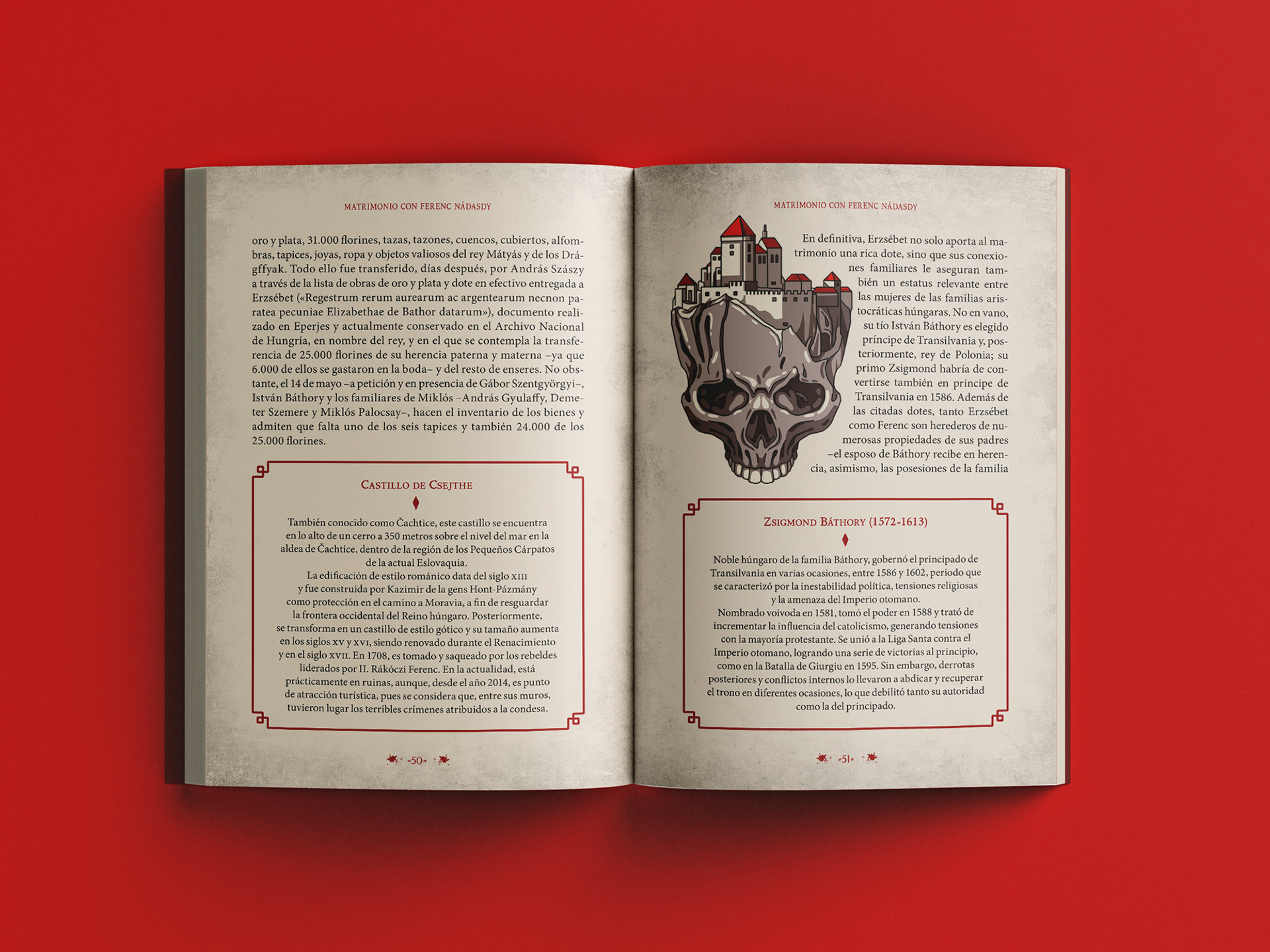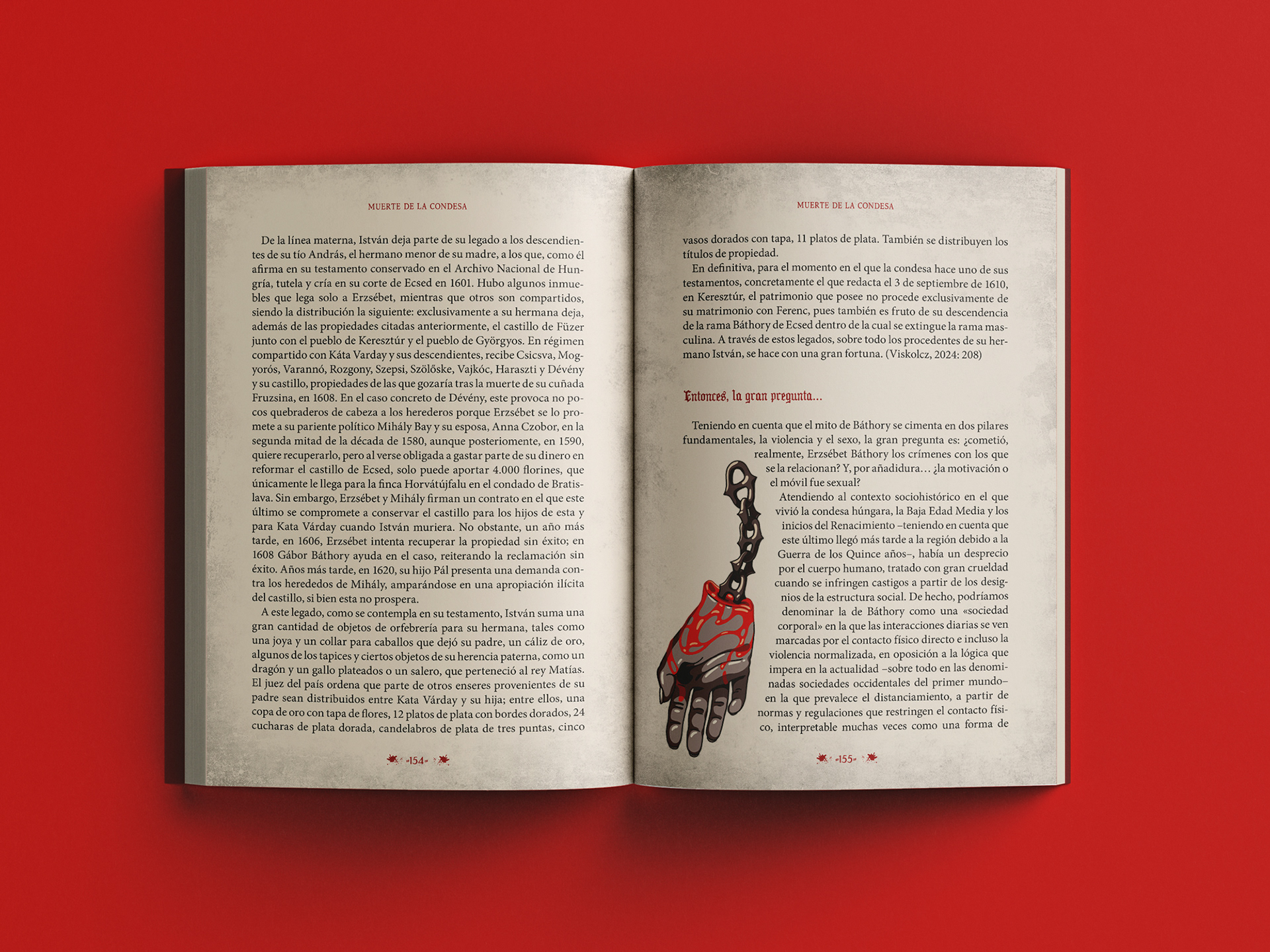 Cover illustration and interior illustrations for the book "La Hungría de Erzsèbet Báthory. La Condesa Sangrienta" written by Laura Blázquez Cruz and published by Akal Ediciones at Spain in October 2025. Illustrations were made in Adobe Photoshop. Art direction by Ángeles López. Editorial and layout design by Ana Martín Pedrosa.