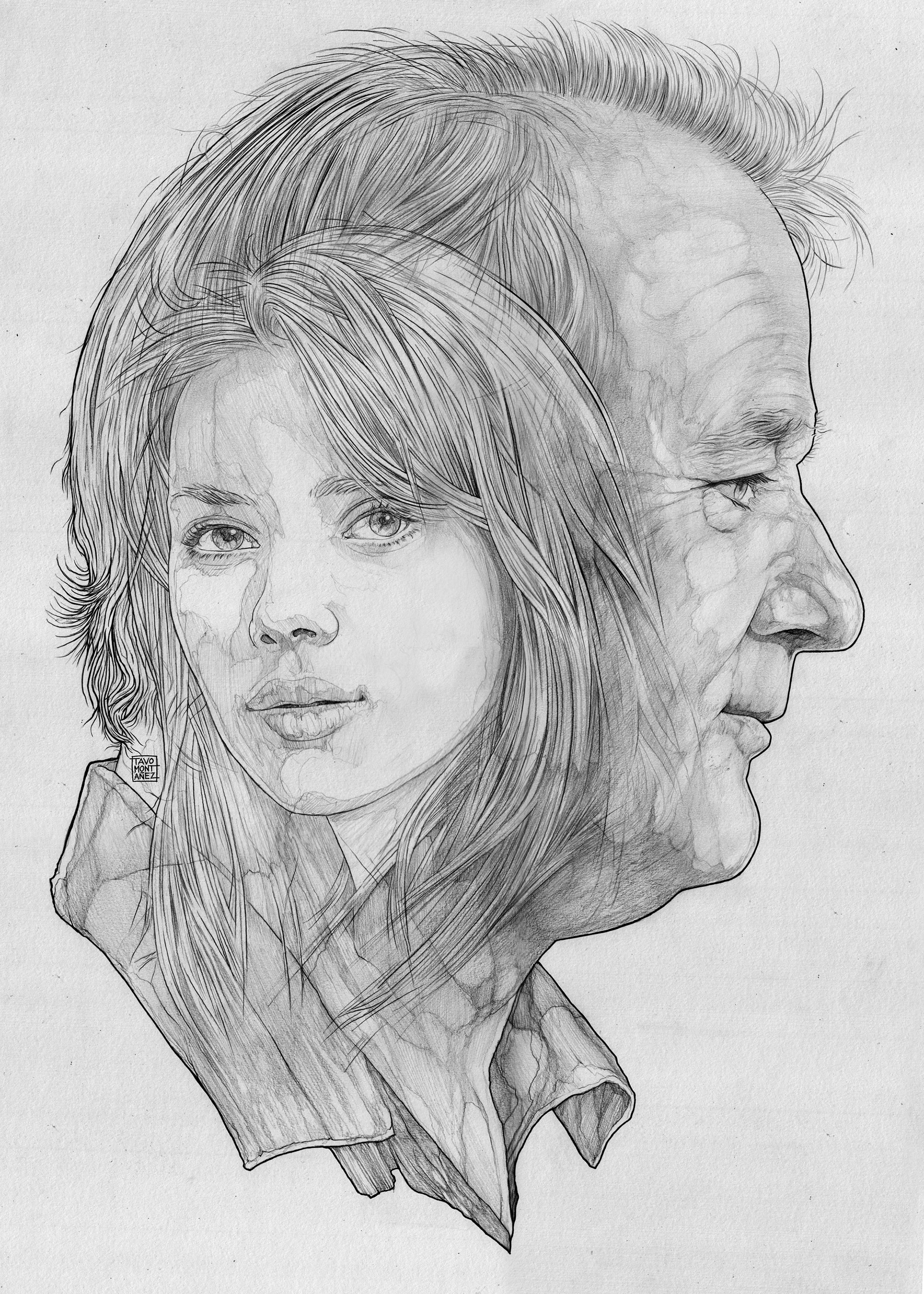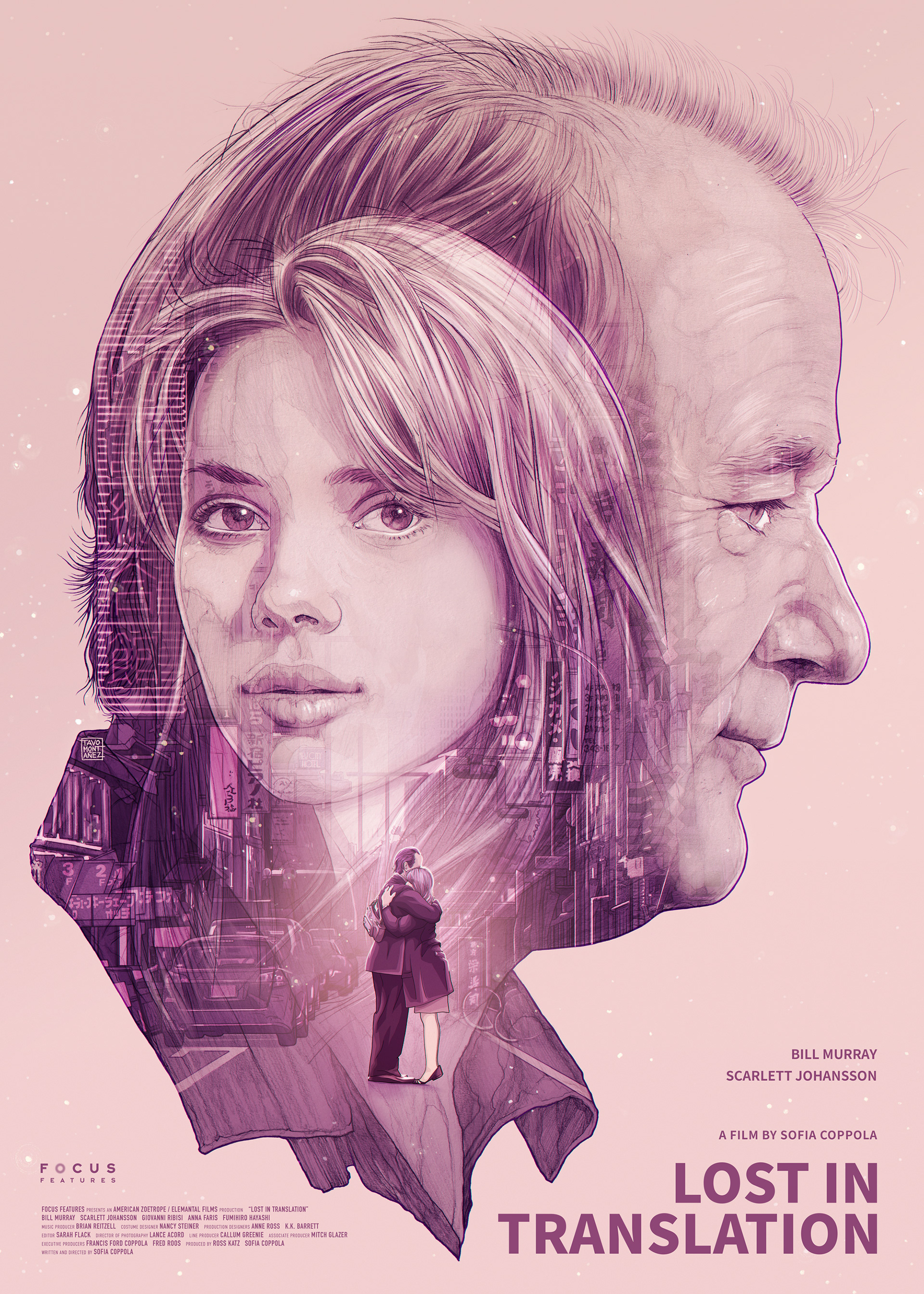 Alternative movie poster inspired by Sofia Coppola's "Lost in Translation". The Illustration includes an original pencil drawing remastered in Adobe Photoshop.