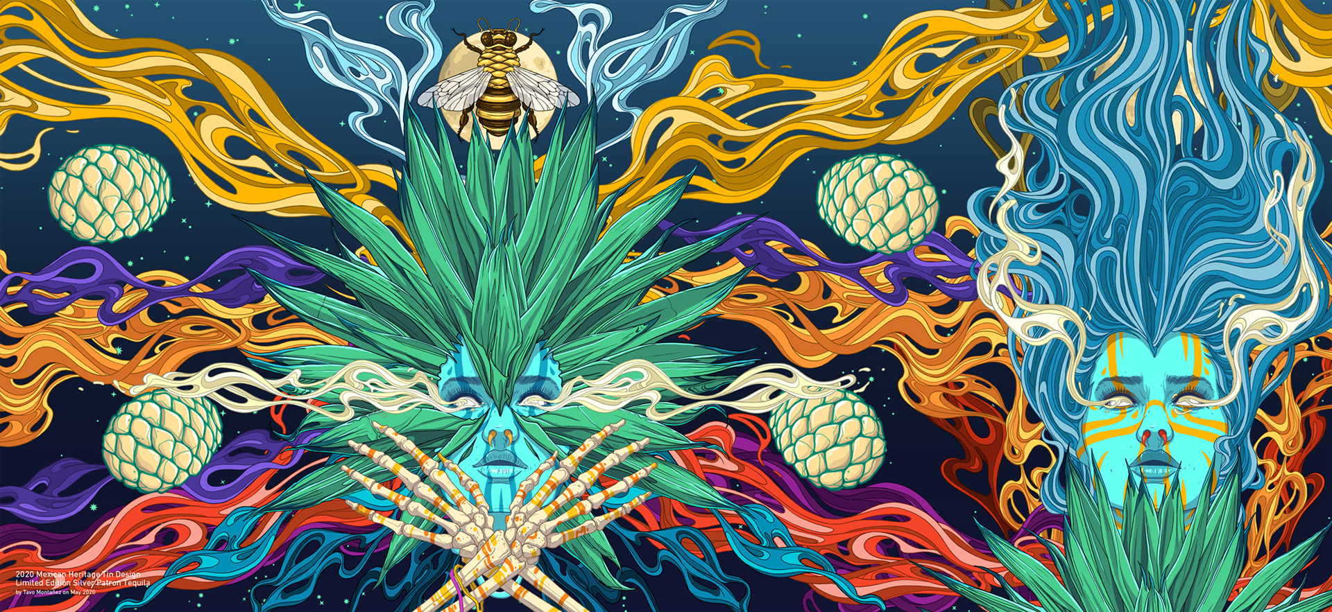 Illustration for the limited edition 2020 Mexican Heritage Tin of Silver Patron Tequila commissioned by Momentum Worldwide New York. Illustration was made on Adobe Photoshop. Art Direction by Emily Beckett