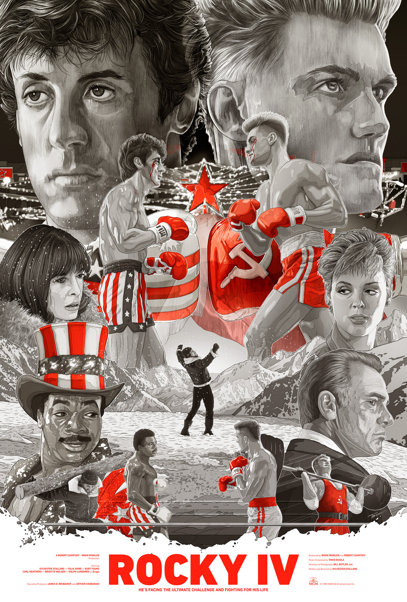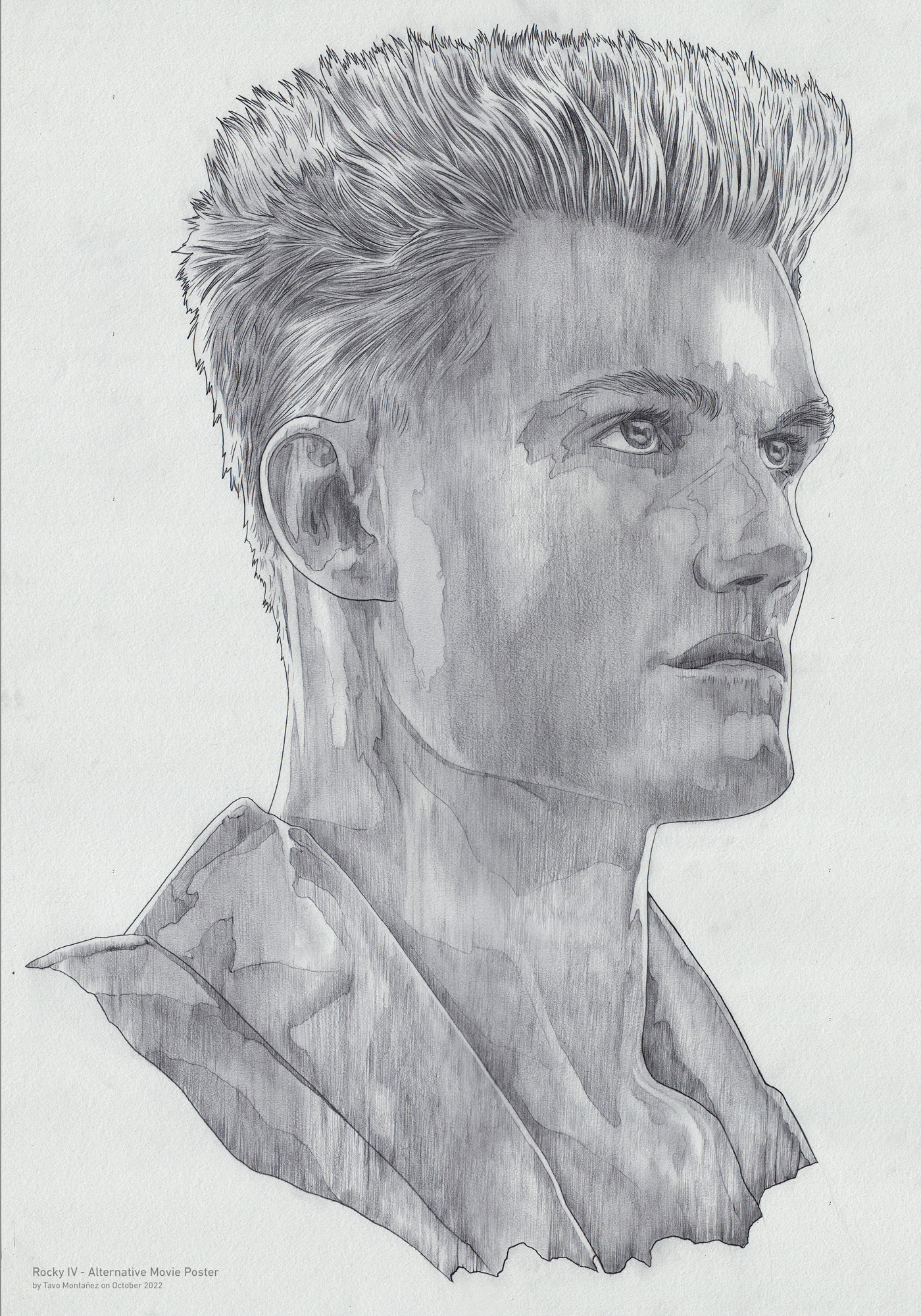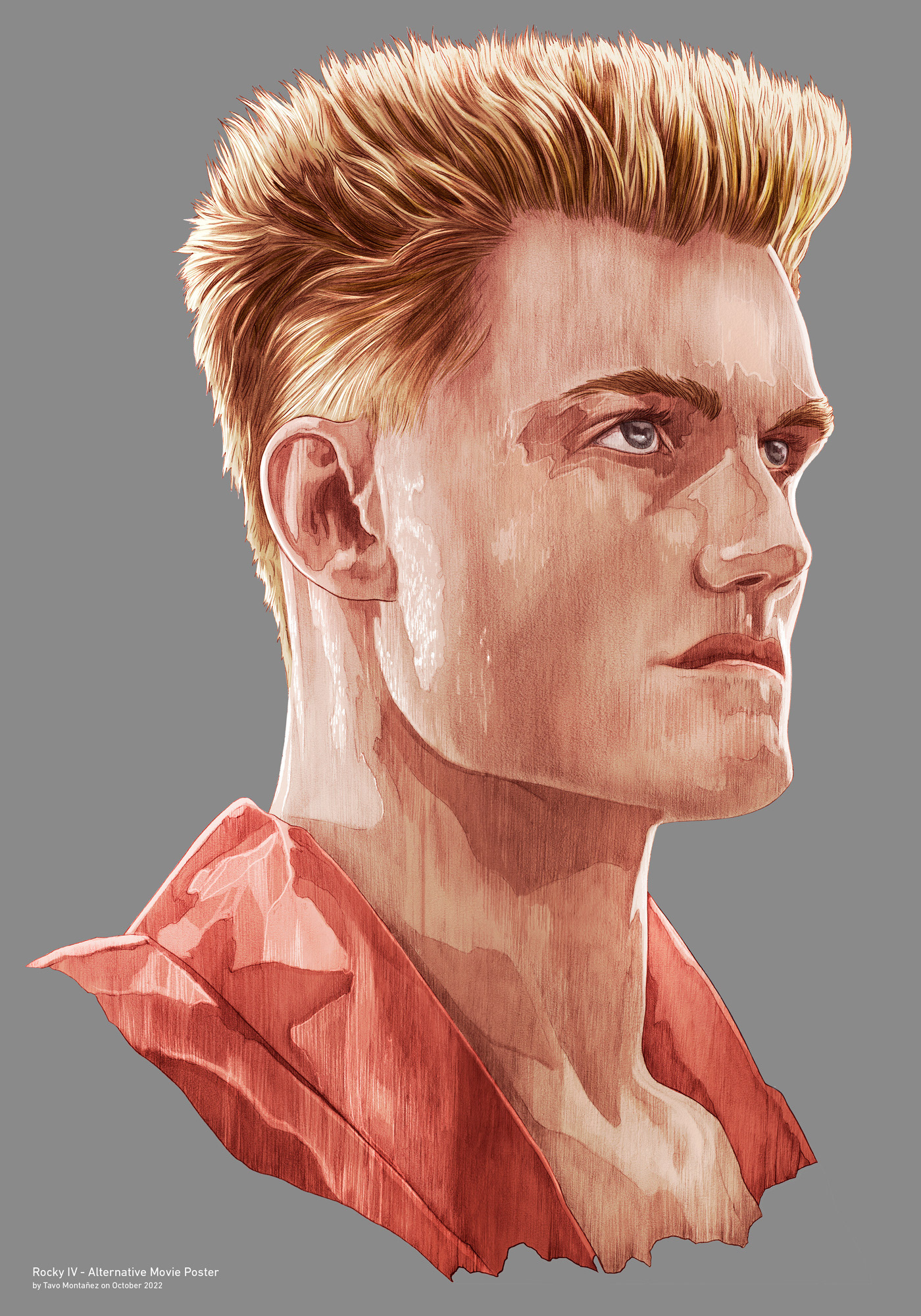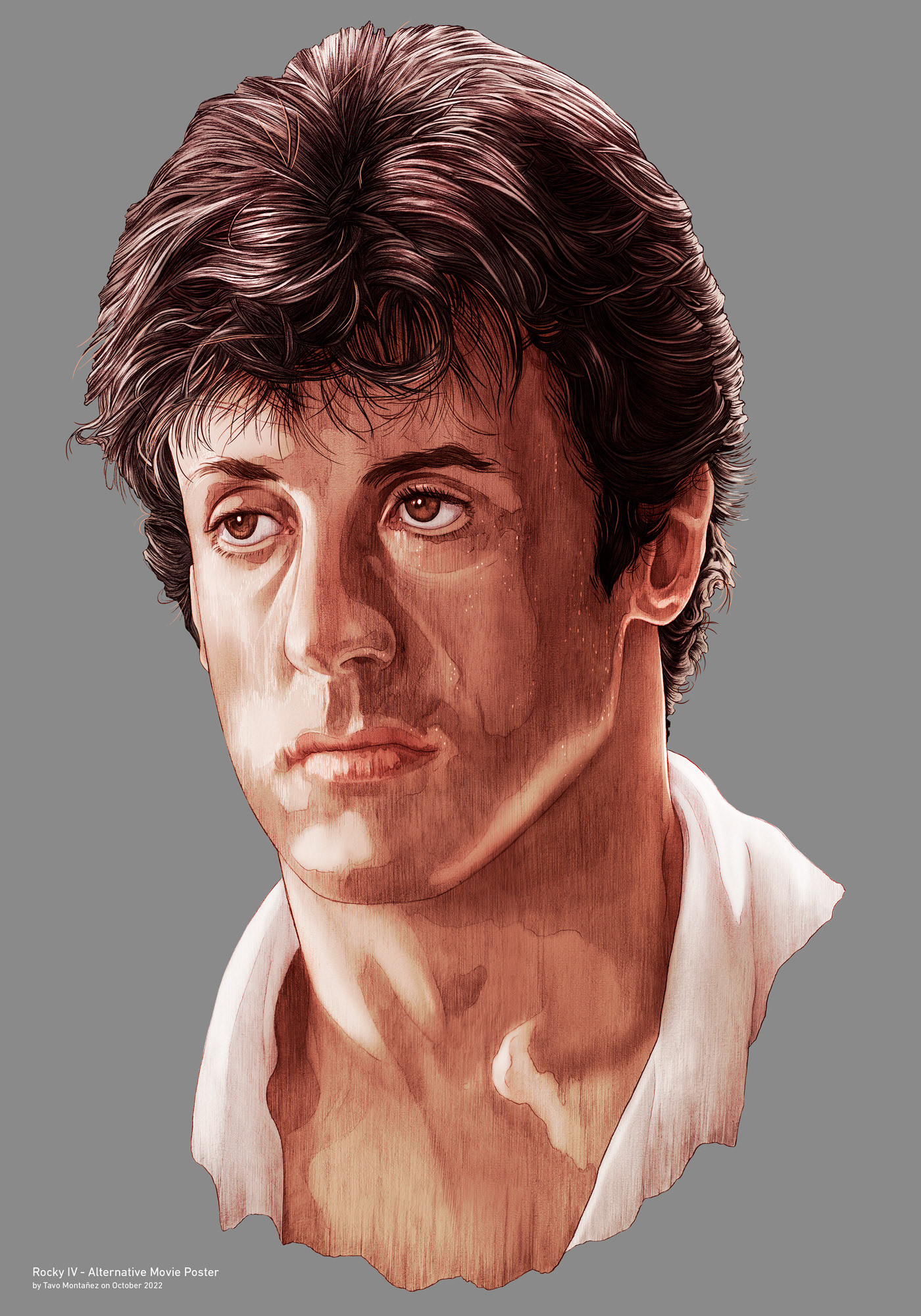 Private commission for alternative movie poster of "Rocky IV". The artwork includes some pencil drawings remastered and colored in Adobe Photoshop.